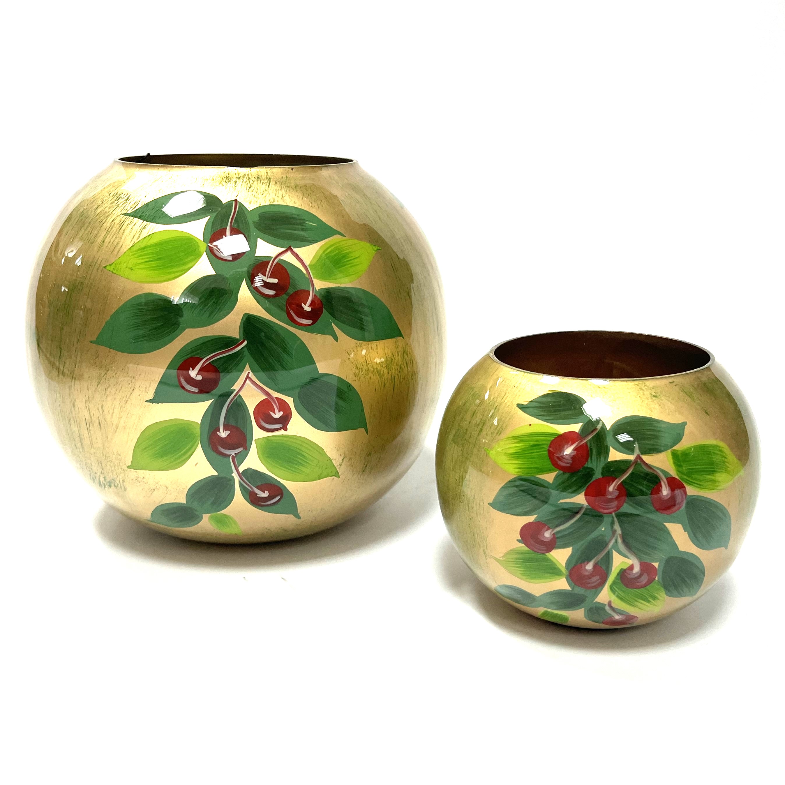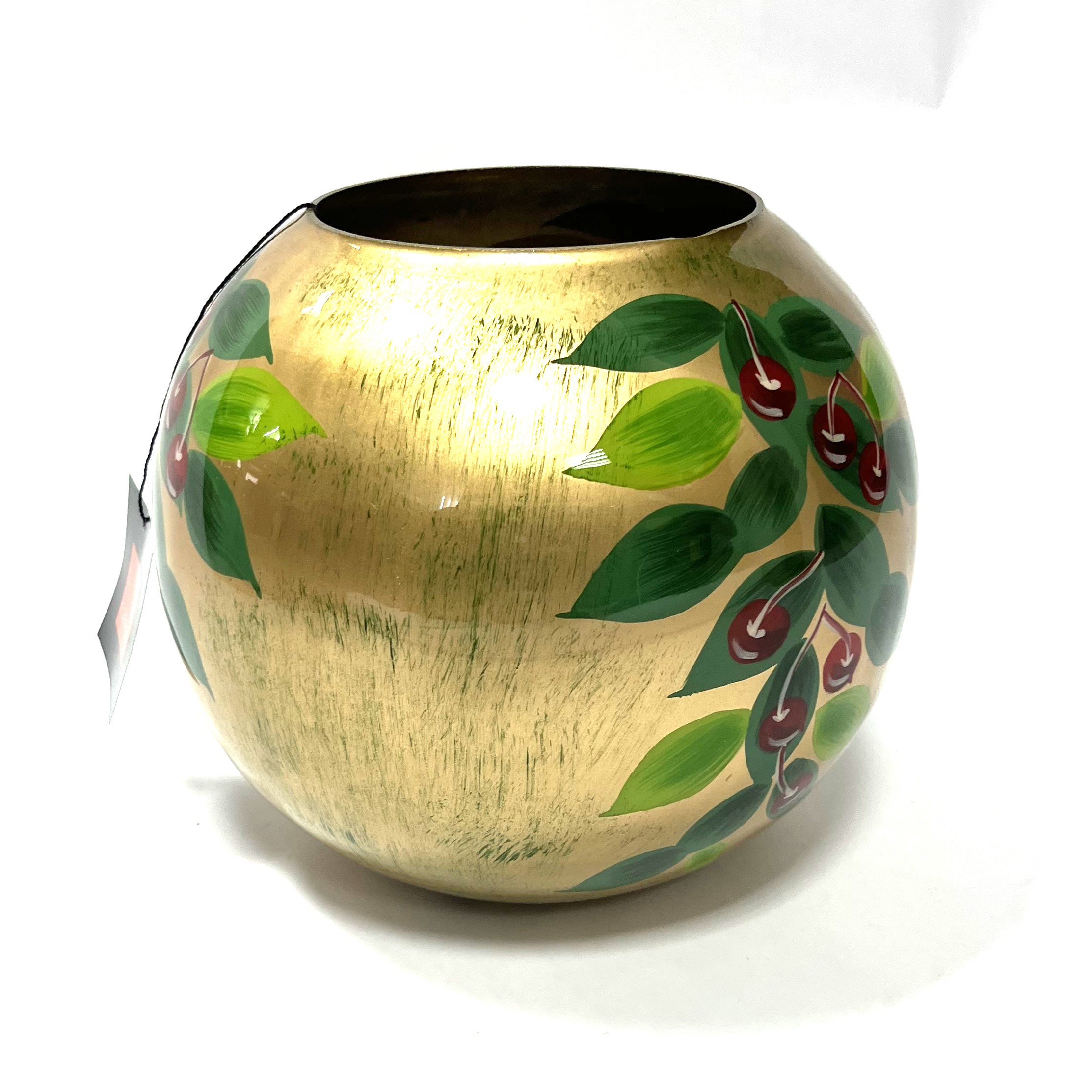 Vase Rund Gold Handbemalt Emaille Glas 14 cm