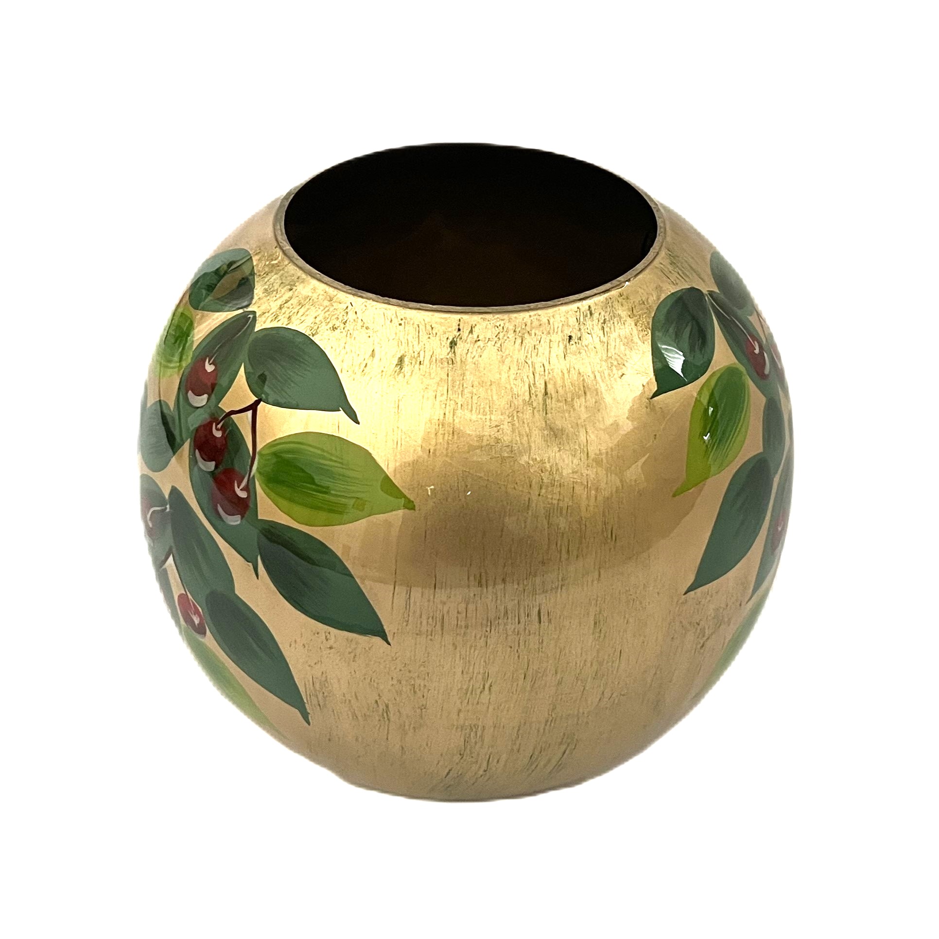 Vase Rund Gold Handbemalt Emaille Glas 14 cm