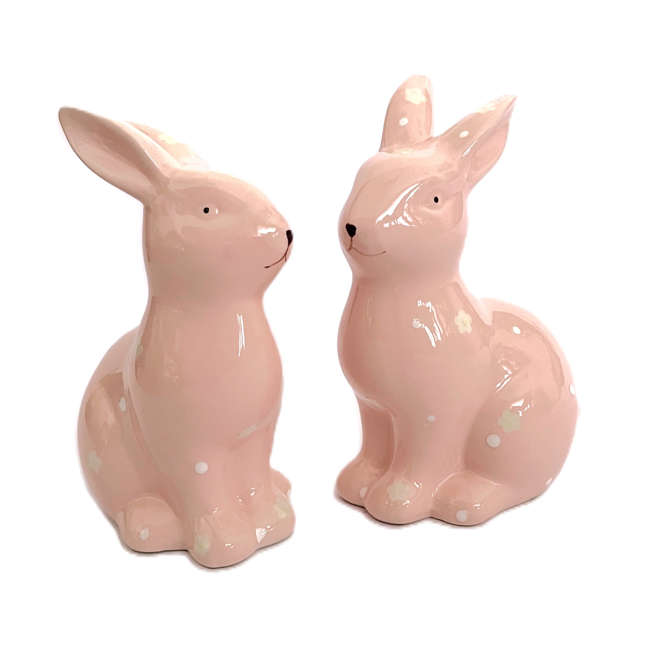 Hase Keramik 2er Set Rosa Blumen Ostern Tischdeko 15 cm