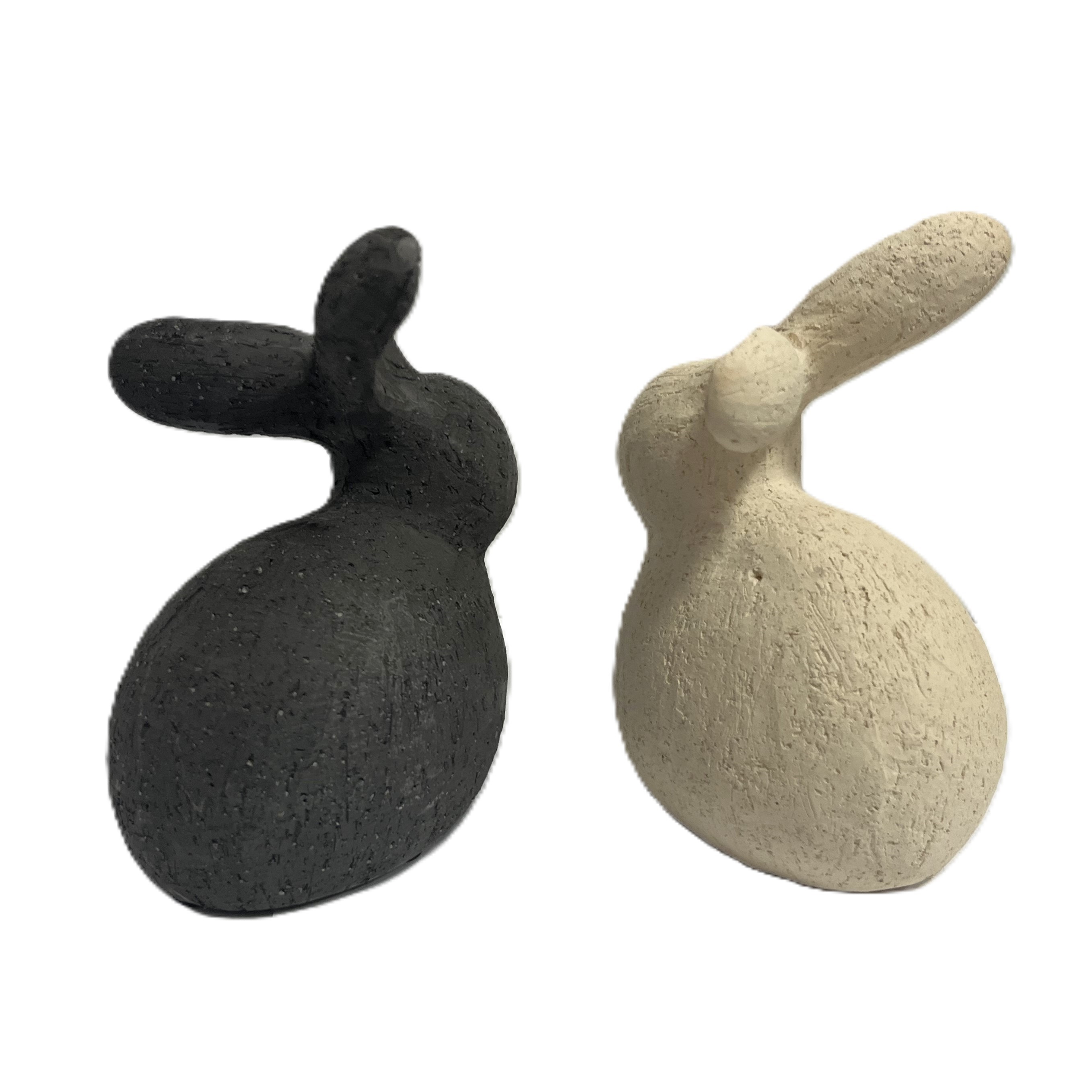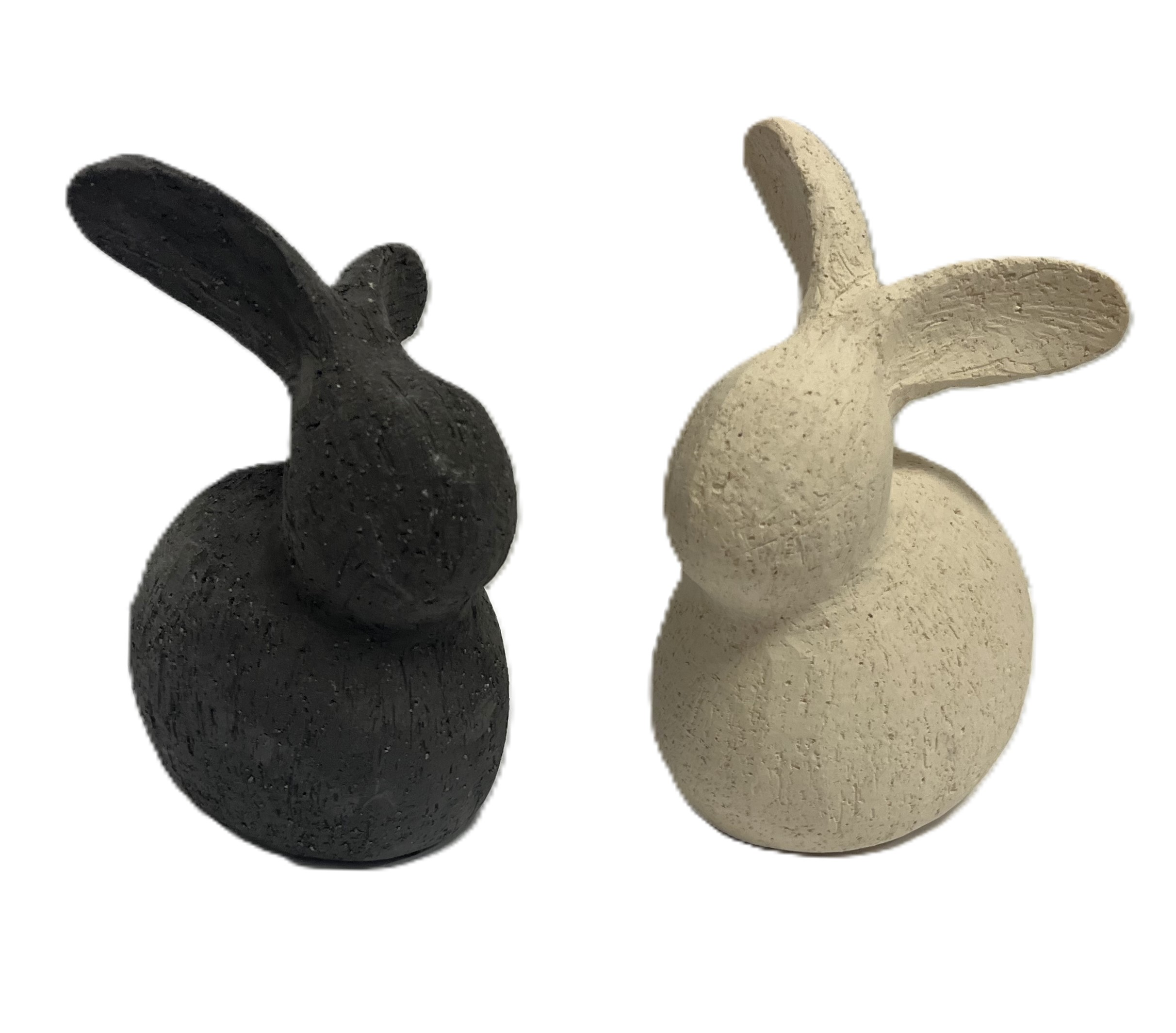 Produktinformationen "Hase Deko Ostern Beige Schwarz Keramik Matt 2er Set 14 cm"