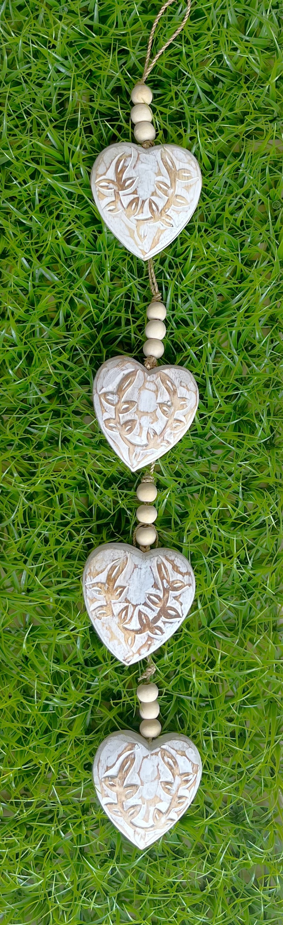 Deko Herz Hänger Weiß Holz 4er Set 33 cm