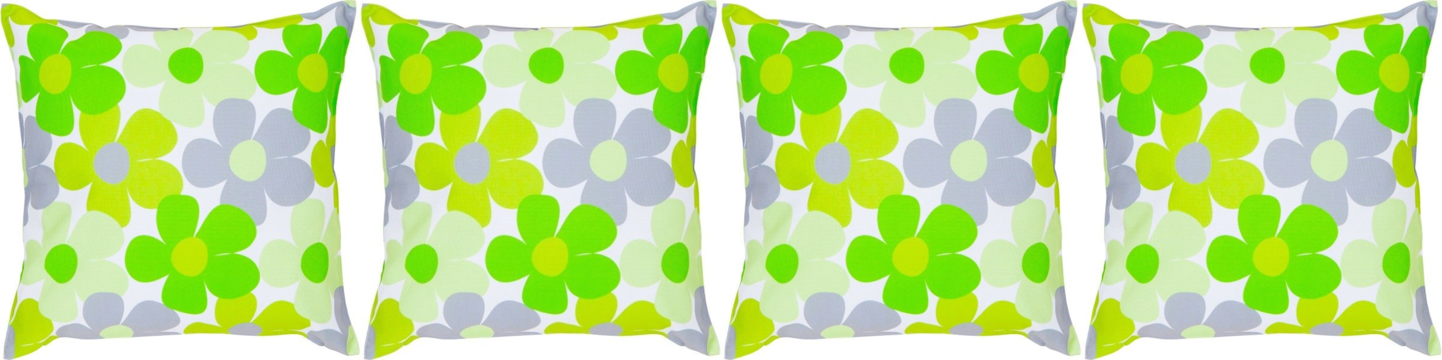 Kissen 4er Set Outdoor Blumen Grün Gelb Vintage Retro 47x47 cm