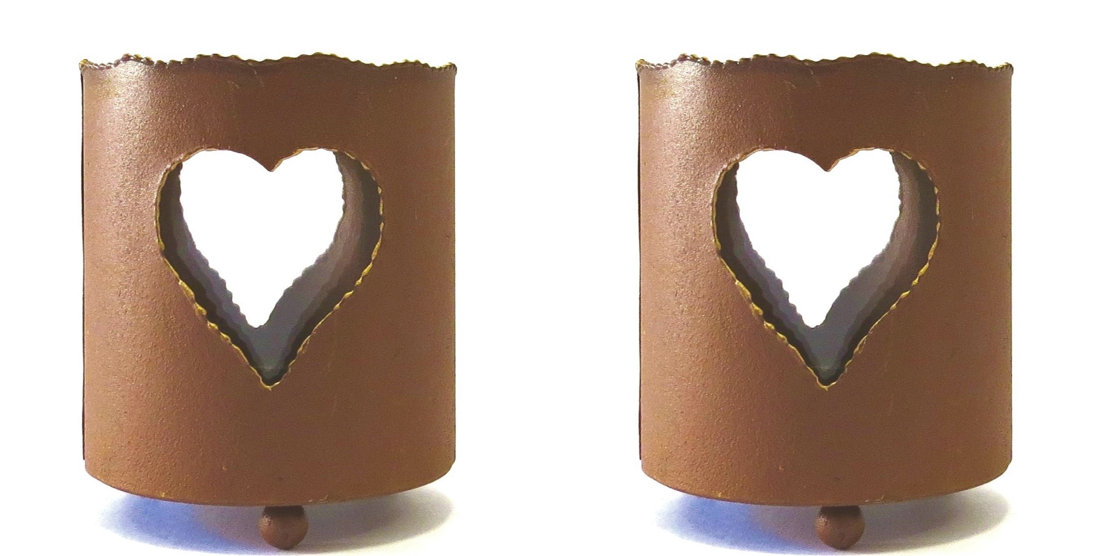 2 x Teelichthalter aus Metall in Rostfarben mit Herzen.