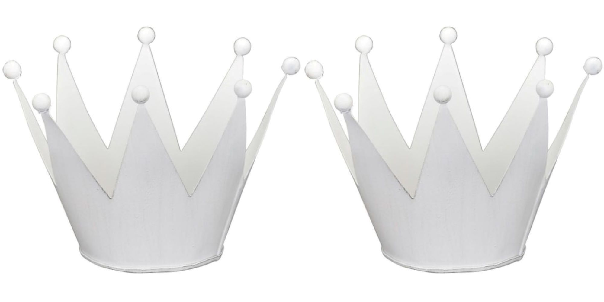 Krone Teelicht 2er Set Metall Weiß Vintage 15 cm
